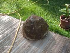 j avais completement zapper , mais il y a 5 ans en arrivant ici j avais deja deterree une pierre meme genre mais probleme bcp plus haute , je l ai eterree dans le meme coin , c la premiere que j ai decouverte qui depassait un peu de terre