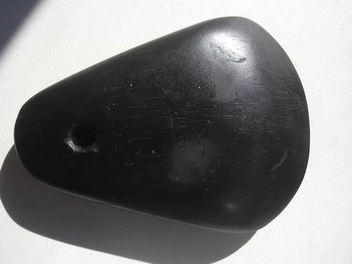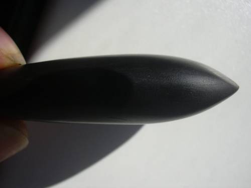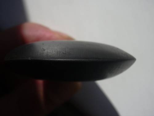 par contre c est un effet de lumiere , mais il n y a pas d arrete de polissage sur le coté , ils sont convexes , de plus je ne connais pas cette roche ( qui n est pas du silex ) d un noir profond et tres dure .