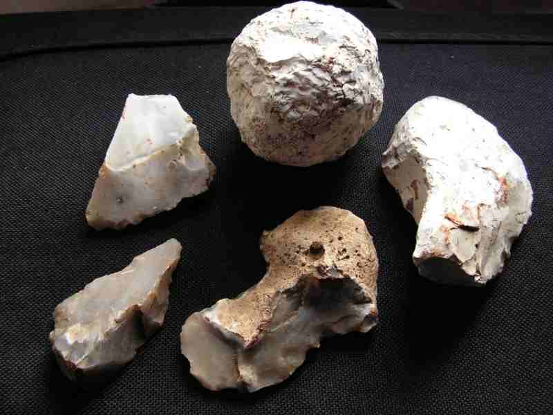 Quelques silex trouvés dans le vexin dans le même champ; dont un beau percuteur bien oval.