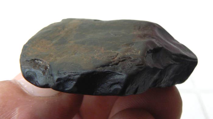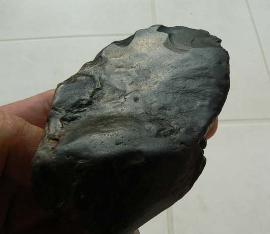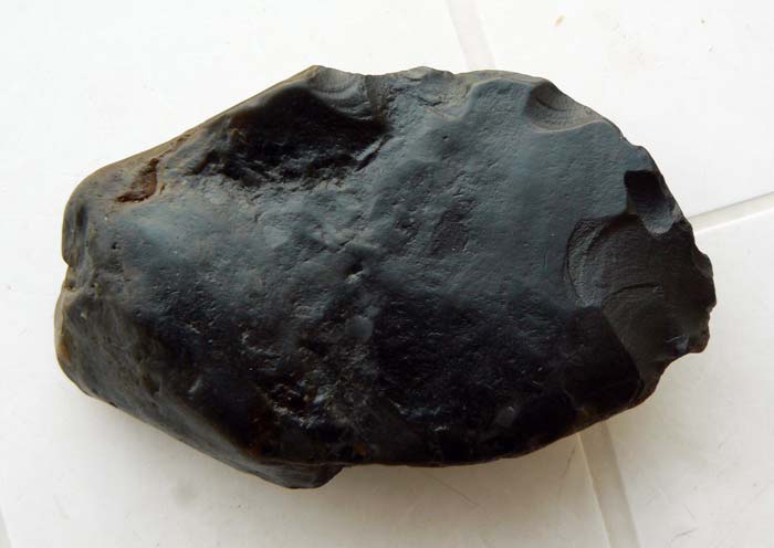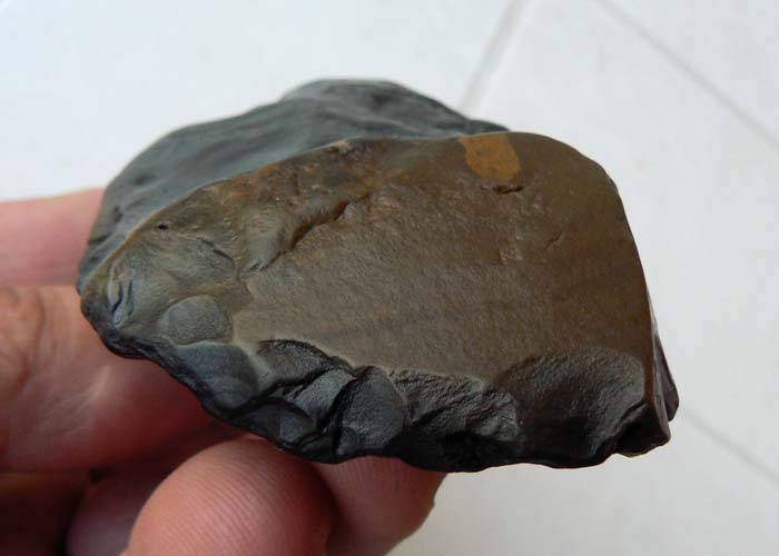 Je poste ce que je pense être un grattoir, il est plus évident que le silex précédent du post 80406 il est dans le même matériau et là on sait pas, du silex noir, calcédoine, schiste graphiteux etc... Merci pour vos avis et commentaires. Cordialement.