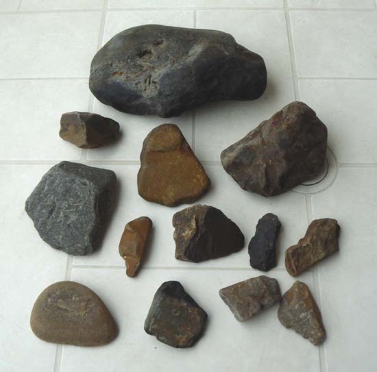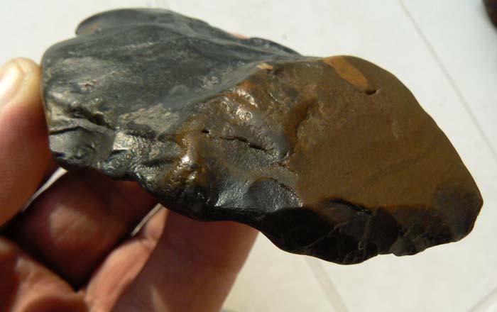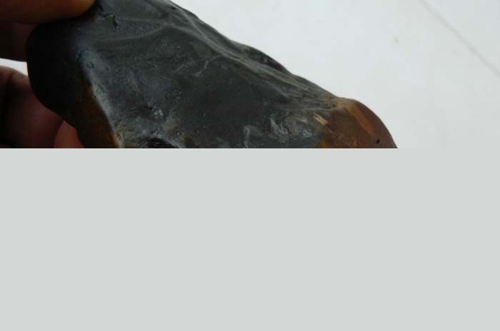 Merci pour cette réponse on peut enfin mettre un nom sur cette roche qui est une cousine de la calcédoine, tu as de belles connaissances en minéralogie cédoine ? En plus je 'kif' autant sur l'outil que les subtiles couleur de cette pierre, on dirait du réglisse enrobé de caramel ,avant de les poster, je leurs fait un petit maquillage, il y a plusieurs mois après avoir travaillé de la chaux, je m'étais enduit les mains de vaseline naturelle pour éviter les gerçures et m'était mis à tripoter la pierre que j'avais trouvée et la oh surprise, on aurait dit qu'elle sortait de l'eau, toutes les couleurs d'origine apparaissaient et donnaient une lecture des retouches incomparables, je joins quelques photos explicatives, la 1ere représente les pierres tel que je les ramasse et les suivantes sont ce que je pense être un petit racloir qui ce trouve en bas de la 1ere photo. Celà rejoint le post de Virginie dans le métal au sujet des méchants oxydes avec une application différente, il faut en passer au moins trois fois que cela tienne dans le temps, bon pour l'instant il n'y a que cinq mois! Mais il ne faut surtout pas en mettre sur les silex de labours ou de dunes qui ont cette patine très poreuse et velouté de couleur crème la patine devient très foncé et gâche l'aspect de la pierre !Cordialement.