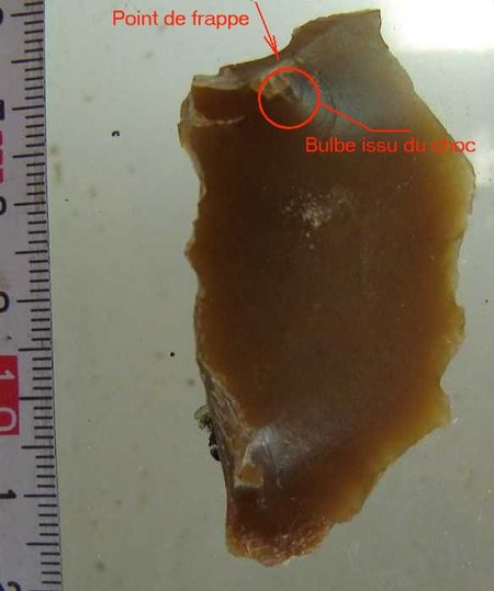 Juste pour info,sur la photo on distingue bien le plan de frappe, et où le coup a été porté pour détacher cet éclat.