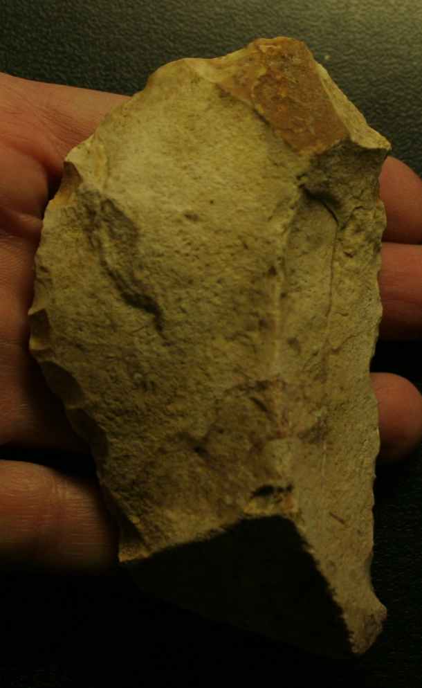 ce qui lui donne un aspect granuleux, ça se voit de temps en temps sur le silex de ce coin.