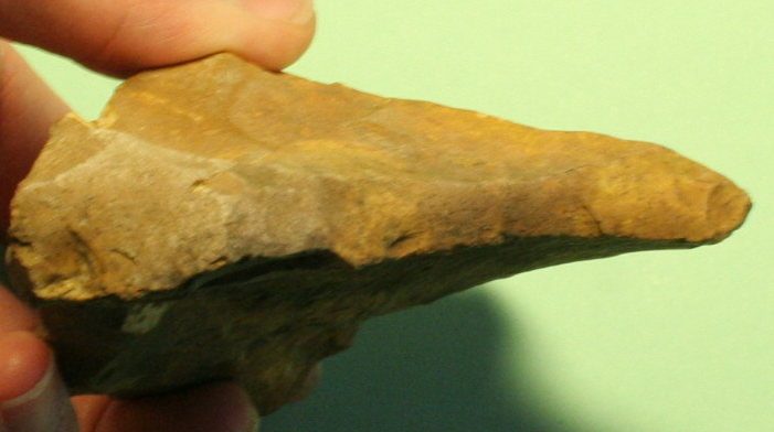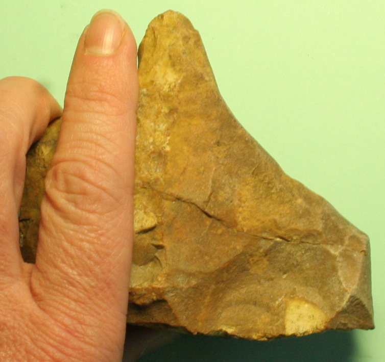 Auriez-vous une idéé par rapport à ce bout de silex presentant une extension de la grosseur d'un doigt ?