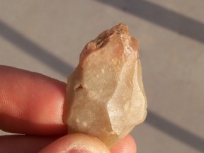 Voici ce que je pense être un petit outil en silex sur éclat, on voit bien les retouches sur une face, on dirai comme une sorte de pointe quelconque(peut-être que le silex à été cassé par les engins agricoles??). trouvé dans un champs labouré, la meme apres midi dans ce même champ j'ai aussi trouvé ce que je crois être un petit grattoir, je le posterai également sur le forum...