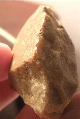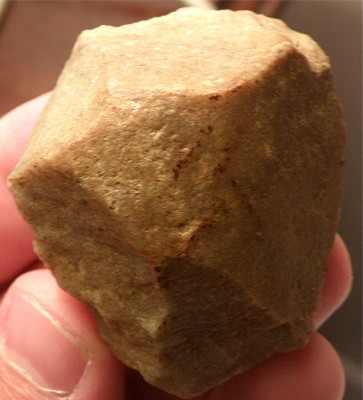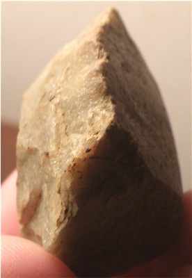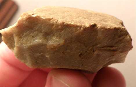 Tu avais raison il y en avait d'autres;; voici sorti du même labour un artefact qui me fait penser à un nucleus mais l'un des côtés opposé à la face corticale présente une retouche importante du style quina opposé à la face lisse du galet ce qui fait penser à un racloir ....
