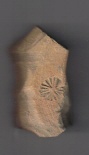 [192] Merci à tous les deux voici un cliché plus grand. Effectivement la couleur n'est pas vive, c'est un fragment de cruche apparemment proche d'une anse et le signe est comme une rosace ou un soleil...
