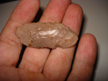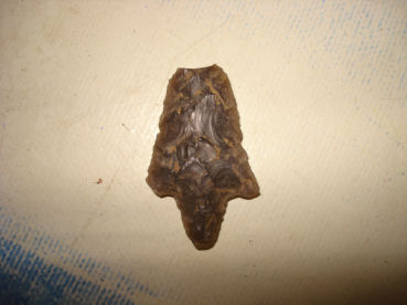 Dommage que le bout et un aileron de la pointe de flèche soient cassés; au moins elle a servi sauf si ce sont des éclats modernes à toi de nous le dire.
