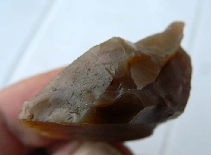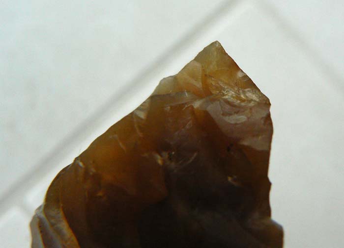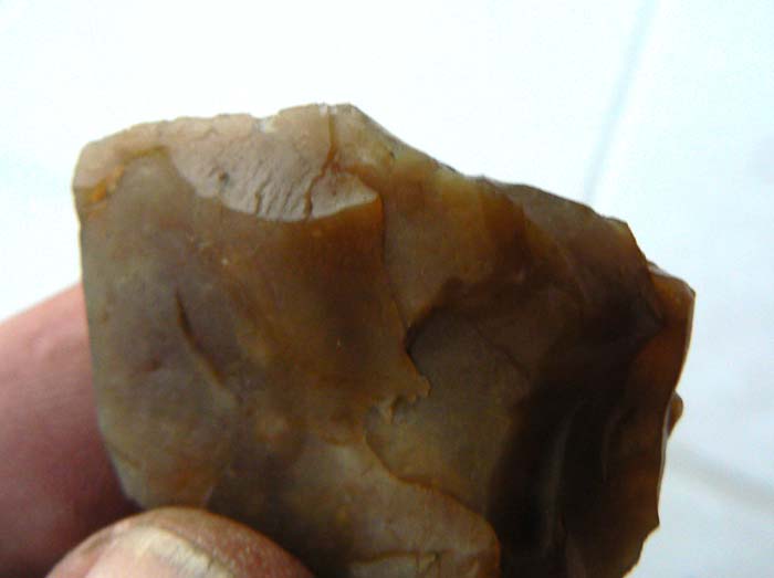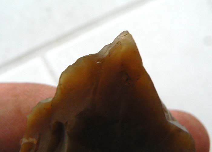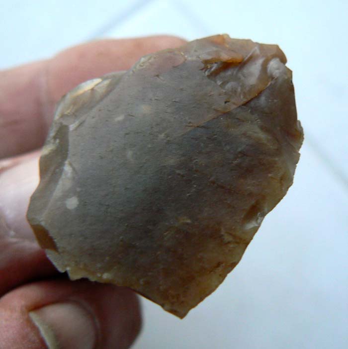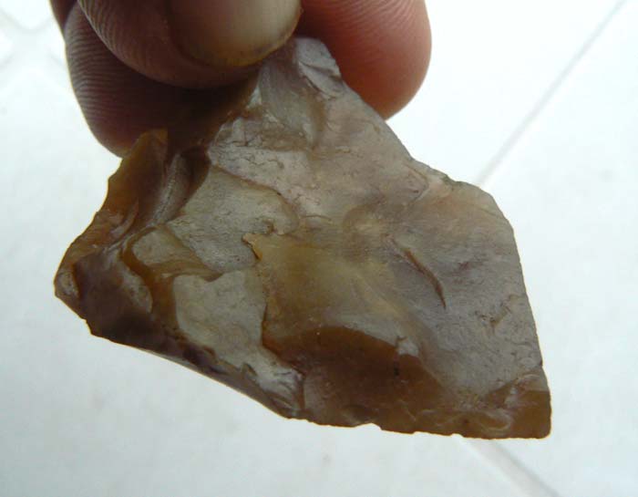 Donc deux avis pour du clivage fracassé, je vous joins deux photos de face, malgré l'absence d'esquilles le tranchant tranche , pour vous la pointe n'est pas retouchée ?( Jullien as-tu des nouvelles de ton ami ?) sovelab, j'avais pas vu ton post inséré dans les photos, possible mais le silex en général n'est pas forcement le meilleur matériau pour les percuteurs. Cordialement.