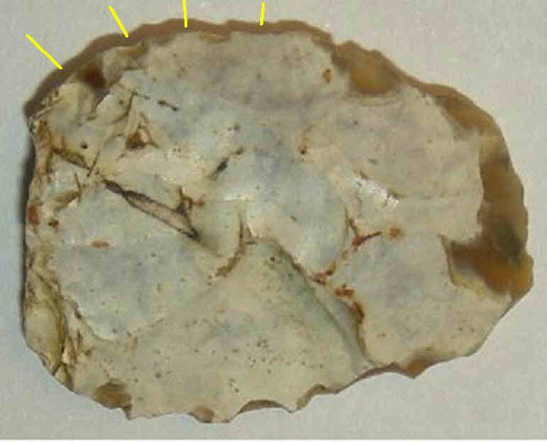 ienien58 et james, c'est l'impression que j'ai eu également mais après exament, il semble que c'est de l'ombre de la pièce qu'il s'agit, les retouches, si ça en est ??? semblent plus récentes que la patine de l'éclat le laisserais penser, réutilisation d'un ancien éclat ???