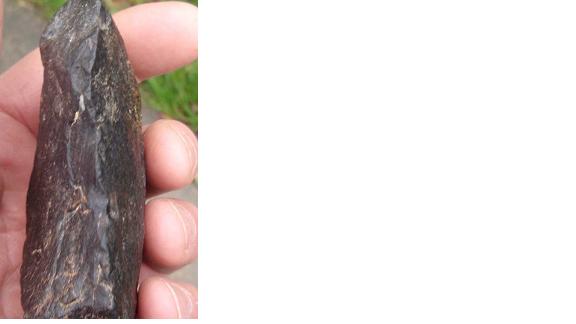On y voit trois enlèvements sur le profil en R2 et à gauche en R0, d'origine Africaine, les premiers hachereau ont été trouvé la-bas , c'est du quartzite ? Un chopper, peut-être un gros grattoir ?Cordialement.