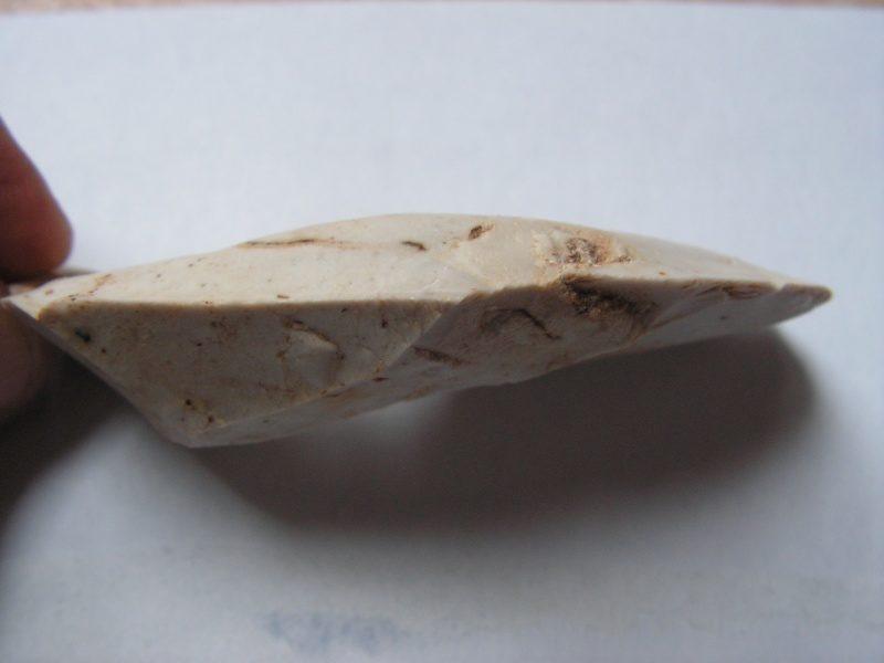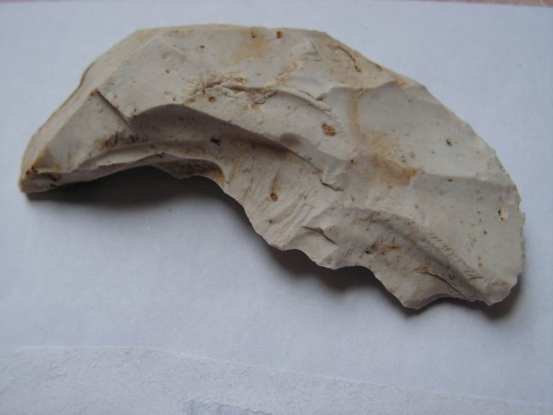 merci pour ton opinion. Je ne pense pas qu'il ai été cassé par un engin moderne; il n'y a pas de différence de patine. Il y a de forte chance comme tu le suggères ; que cet outil ai été emmanché pour en faire un couteau ou peut être une espèce de serpette pour couper le blé par exemple ?