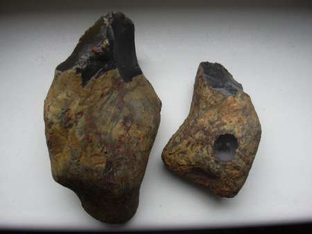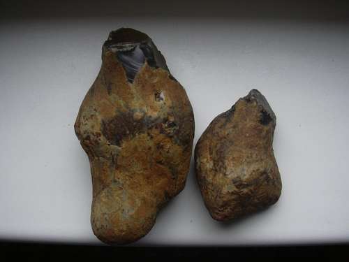 suite au post de ami HEIDELBERGENSIS j'ai ramassé deux pierres ( peut etre des chopping tool ) , car il faut dire que ce sont les outils qui me donne le plus de difficulté .