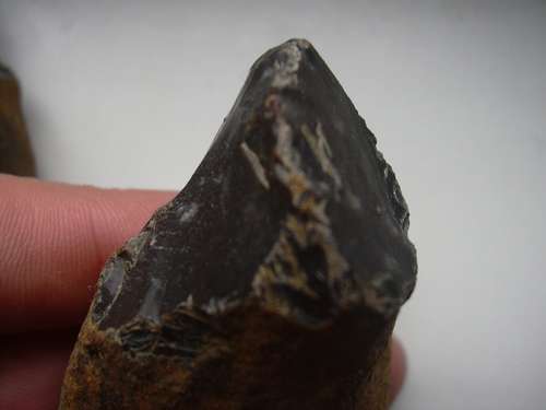 merci , en effet le grand a subit un choc recent . Pour le petit on peut distinguer des retouches sur le bord du cortex , au bas des enlevements .