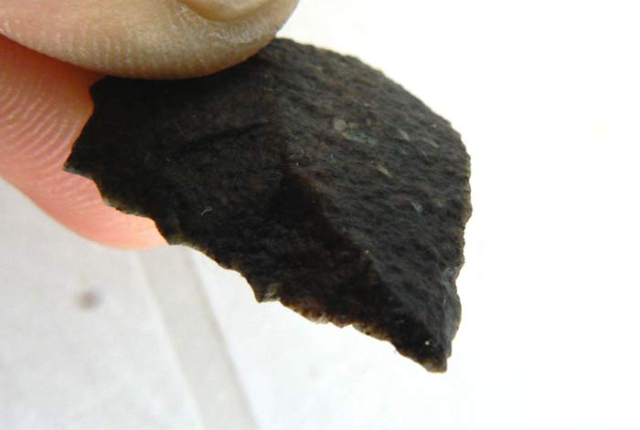Merci d'essayer biface, je te l'accorde pas très académique, le matériau est fruste, si s'en est une ? le gars s'est adapté à la forme de l'éclat, l'épaisseur correspond, un côté est 'biasé' et l'autre limite 'denticulé', la pointe pique encore et il y a un enlèvement important qui sert à désépaissir sa base, il me semble avoir vu des dessins d'armatures sans pédoncule qui ressemblaient un peu à ça.