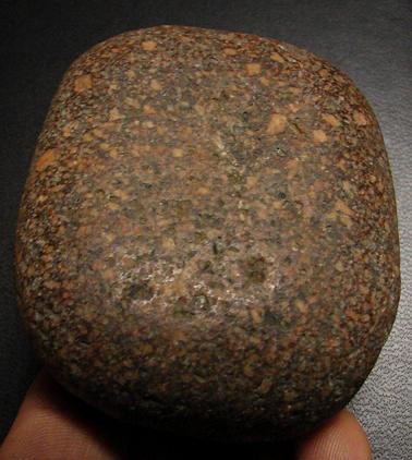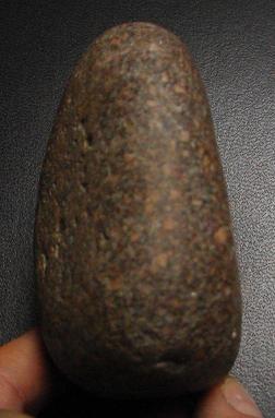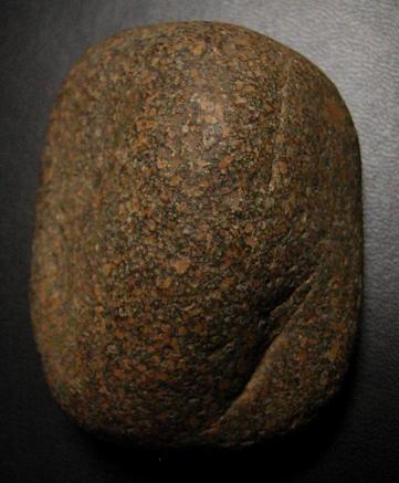 Ton objet me fait penser à une molette néo. Je te poste les photos de celle que j'ai découvert il y a pas mal de temps. La roche semble similaire bien que de couleur différente (marron mais plus foncé en réel que sur les photos). J'ajoute la photo d'un 'galet' qui me semble aussi similaire en ce qui concerne te type de roche mais celui-ci a une couleur qui tire vers le gris/noir. La densité de ces roches est plutôt élevée et elles sont bien grenues. Elles proviennent toutes deux du 56 et étaient accompagnées de matériel néo.