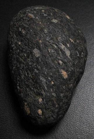 Nature de la roche (grenue à phénocristaux de feldspath, sombre, presque noire)