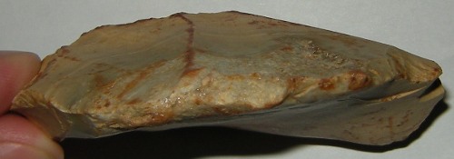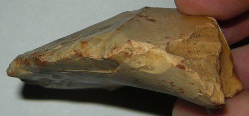Voici ce que je pense être un racloir. Le bulbe est en haut au dos de l'objet. Est-ce que je me trompe quantà l'identification ? Quelle datation ?