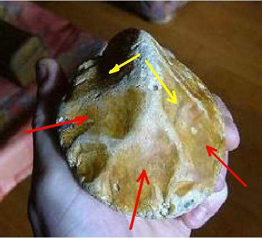chopper ??? dans ce cas ce serait plutot un chopping-tool, mais j'y verrais bien un nucléus discoide si les enlèvements sont dans le sens des flèches rouges, si c'est dans le sens des jaunes alors un chopping-tool pour obtenir une arète centrale mais il me semble bien plat pour ce dernier.