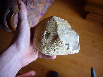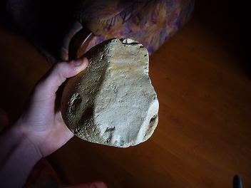 voici le second silex que mon ami m'a confié, il doit s'agir d'un gros nucléus sur galet, trouvé un autre jour à 30 mètres environ de premier outil ( chopper ?) que je viens de poster sur le forum. On voit bien la lame enlevée etc....si quelqu'un pouvait m'en dire un peu plus car je ne sais pas vraiment ce que c'est..!?, une petite datation etc..??