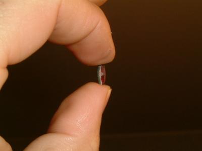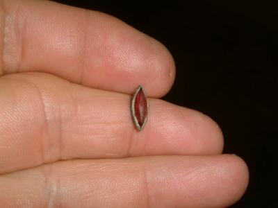 1cm de long sur 0.5 de large couleur rouge 6 facettes triangulaires de chaque coté.