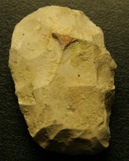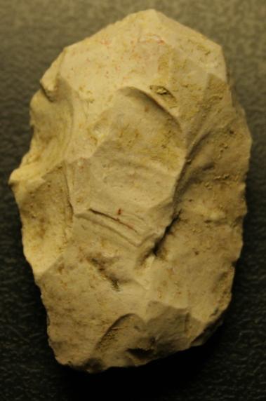 faisant suite au post d'heidelbergensis, voici un petit outil retouché sur les deux faces et trouvé en contexte paleo moyen de 4.4cm de long, 3cm de large et 1.5cm au plus epais.