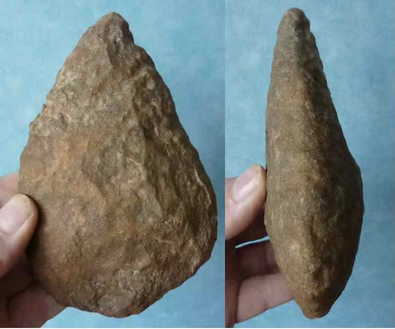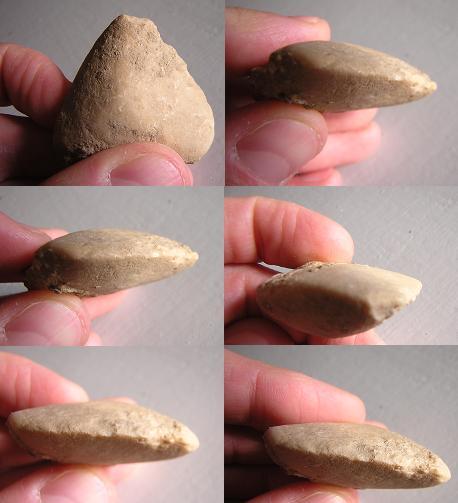 j'ouvre ce post pour permettre à nombre d'entre nous d'y afficher les curiositées auquelles nous sommes parfois confrontés comme ce ' faux biface ' qui est l'oeuvre de dame nature, j'ai longtemps été persuadé que ça en était un très usé tout y est, la forme, la dimension, je l'ai gardé en souvenir.