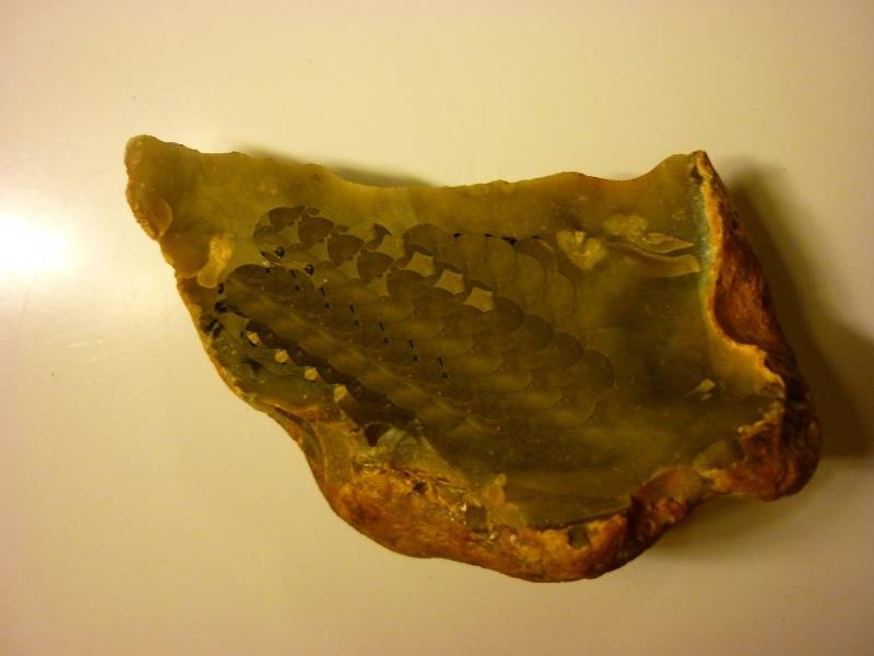 belle empreinte en effet, il y en avait une semblable sur l'autre silex présenté aussi par pagus vexinus, qu'est-ce ??? on dirait une peau de poisson avec des écailles mais ça doit etre autre chose