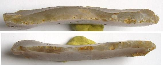 Je suis pas sur qu'elle ait été plus longue (en R1, à gauche on voit le bulbe de percussion et la lame semble avoir été retouchée sur son extrémité, à droite).