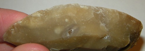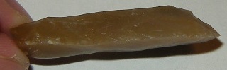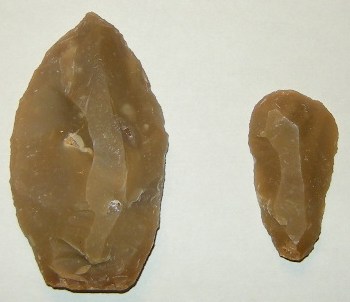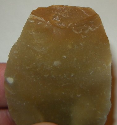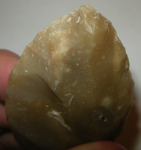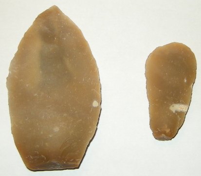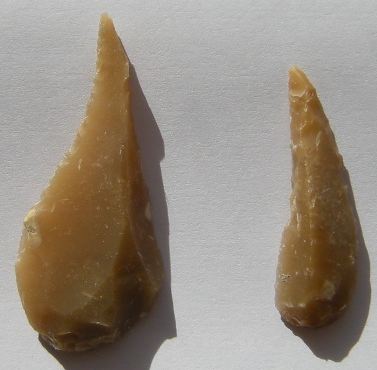 Allez, je vais mettre quelques photos de mes premiers essais réalisés aujourd'hui. Comme je ne maîtrise pas le débitage laminaire, j'ai donc produit des éclats au gros percuteur dur. Je les ai ensuite retouchés avec un petit percuteur.