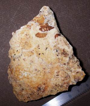 Il s'agit d'un morceau de meulière voisinant avec des éclats anthropiques de grès lustré.