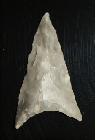 voici une flèche à retouches unifaciales et à retouches inverses à la base