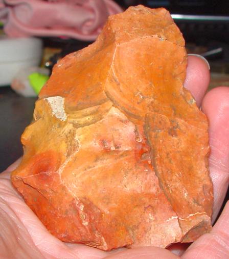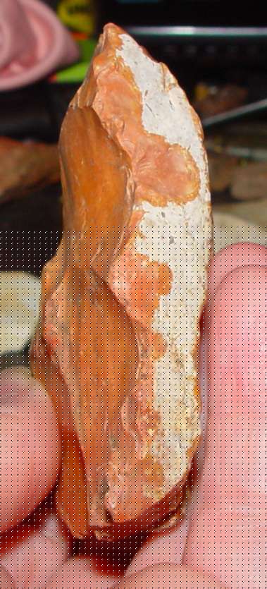 En fait ce qui m'a fait un peu douté c'était d'une part la forme, ainsi que les gros enlèvements sur le dessus qui à mon avis n'ont pas pu donné d'éclat utile. (au niveau enlevement cela ressemble quand même assez à certains vieux bifaces... )