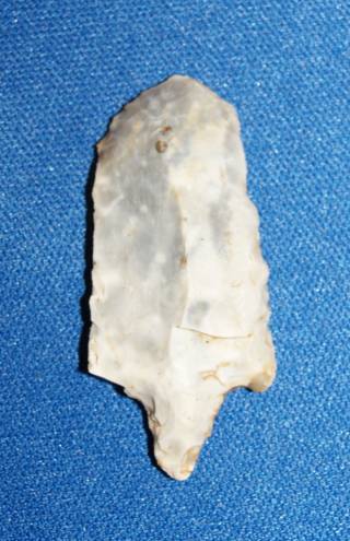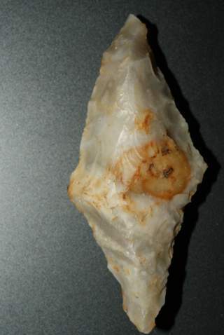 C'est quand même bien épais ce truc là , honnetement je pense de moins en moins qu'il puisse s'agir d'une pointe de lance où de jet (est-ce que le poid est reellement un facteur important ? Si une sagaie est lancé avec un propulseur, 20grammes c'est pas grand chose par rapport au poids de la sagaie... )