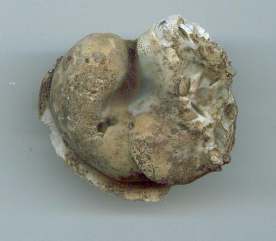 et de l'autre un moule interne (c'est-à -dire le moulage de l'intérieur d'une coquille) d'un lamellibranche. Huître ou autre lamellibranche? Il faudrait d'autres clichés.