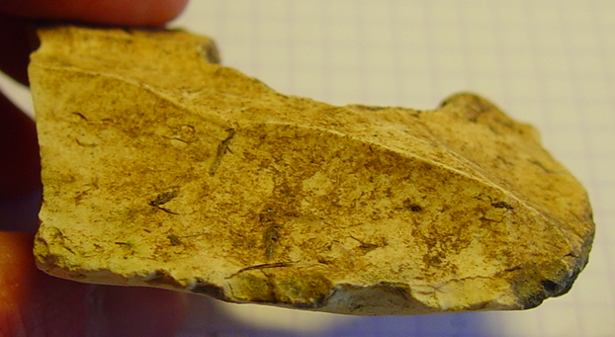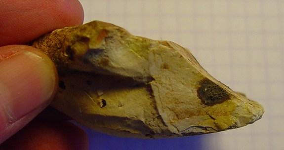 Voici un truc assez bizarre, trouvé en contexte paleo moyen et qui semble être un tranchet. Ce qui a de bizarre dans ce caillou, c'est qu'il y a un enorme trou (naturel) dans le silex et que dans le coin où je prospecte, ce n'est vraiment pas le silex qui manque... donc la question c'est pourquoi s'embeter à utiliser un silex totalement pourri quand on peu trouver mieux juste à coté ?