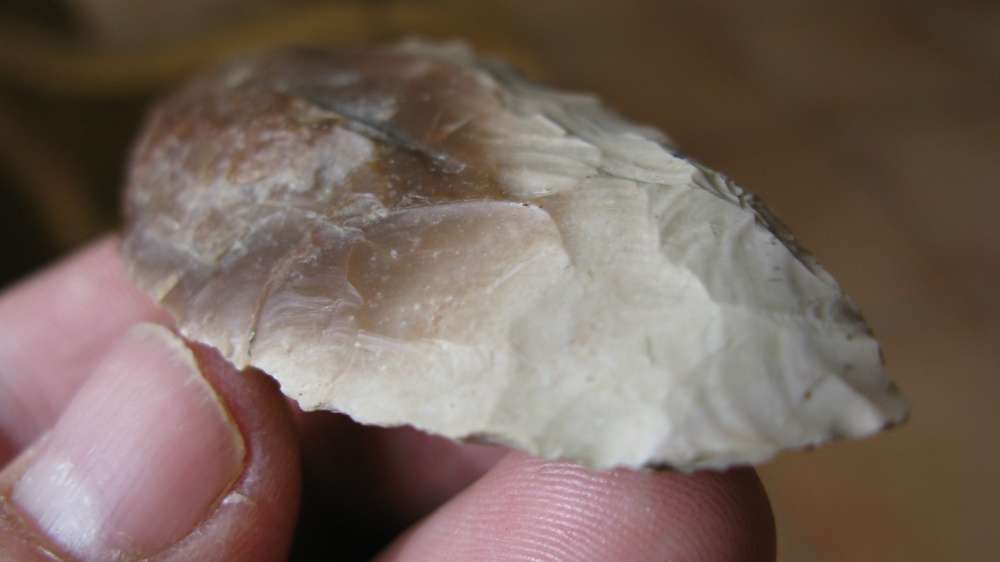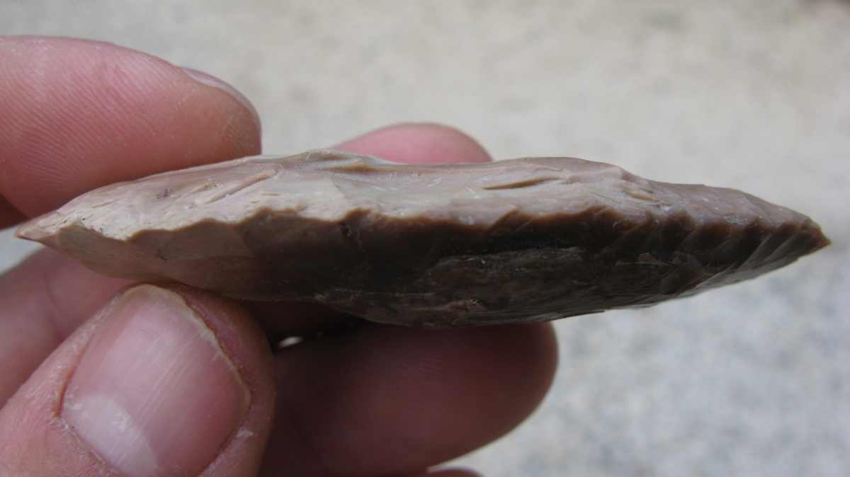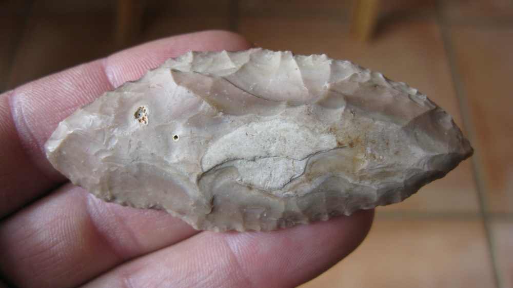 perso j'ai du mal à y reconnaître une feuille de laurier/saule qui sont des objets plus fins avec des retouches couvrantes... j'y verrais plus un outil emmanché du genre poignard? Qu'en pensez vous?