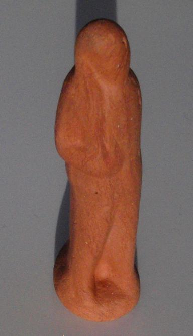 J'ai découvert cette statuette en terre cuite lors d'une grande marée. Elle est comme vous le voyez fortement usée par son séjour dans l'océan. Le personnage me semble dans un garde-à-vous approximatif et tient avec sa main droite un objet qui pourrait être un fusil. Je vous demande donc si l'allure de cette figurine vous fait penser à un style militaire en particulier. Enfin si vous pensez aussi à toute autre chose n'hésitez pas à me faire partager vos idées.