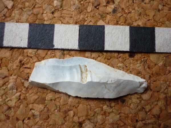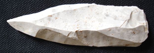 Tenez, puisque je suis de passage : je ne pense pas que 'pointe de lance' soit homologué comme identification typologique. Je ne pense pas non plus que ce soit un poignard, là encore typologique : il y faudrait des retouches et plusieurs autres trucs. Par contre que cette lame (typologique, elle, ou pointe, il y a à hésiter, en effet) puisse être utilisée en temps que couteau semble bien probable. Quoi que ... elle n'est pas esquillée ... curieux ... On ne l'aurait taillée que pour la pointe ?