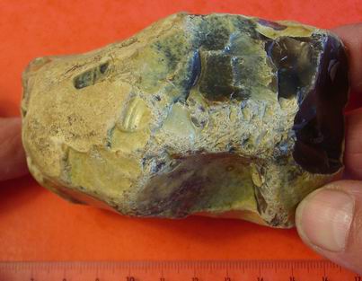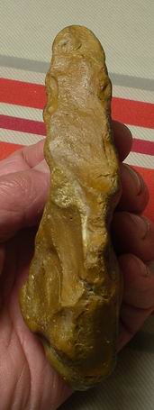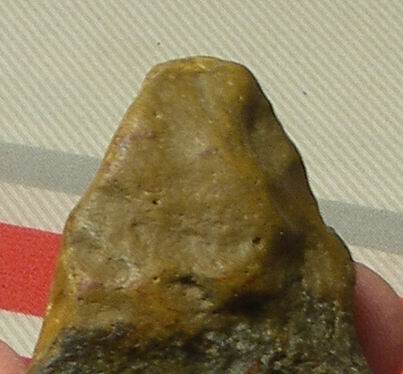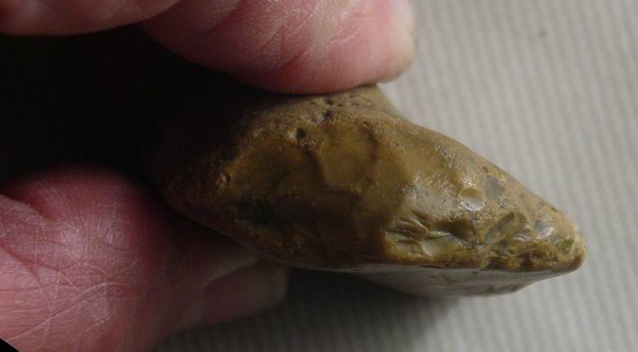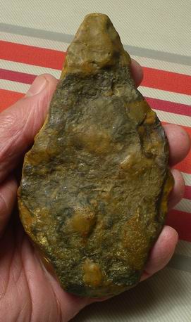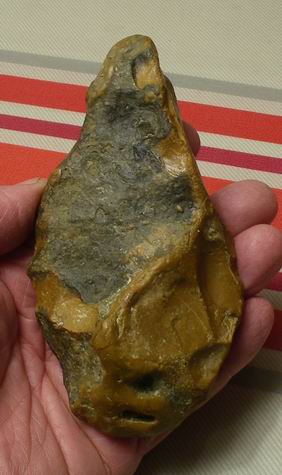 En fait sur un flanc de vallon quaternaire, en picardie, comme pour la Somme, il n'est pas anormal de trouver du plus ancien tout en haut. Finalement, je l'ai gardé pour la forme globale et le lieu de découverte. En plus, ce n'est pas le silex local.