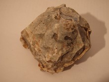 Bloc de silex qui a subi l'action du gel. Il a éclaté alors qu'il était encore en place dans sa gangue et les eaux d'infiltration ont 'ressoudé' les morceaux. Bloc typique des zones d'influence des périodes glaciaires. Et probablement trouvé dans une 'vallée' ou zone d'écoulement des eaux de pluie.