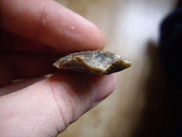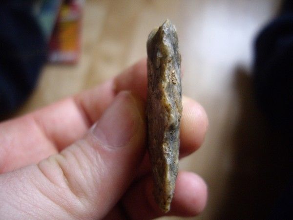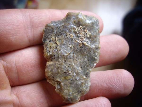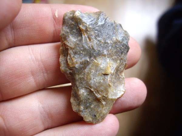 Voici une pièce avec retouches bifaciales trouvées aujourd'hui