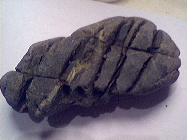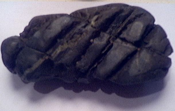Peut-être un fruit ou une racine fossilisé que des animaux auraient griffé, picoré...