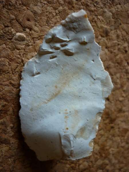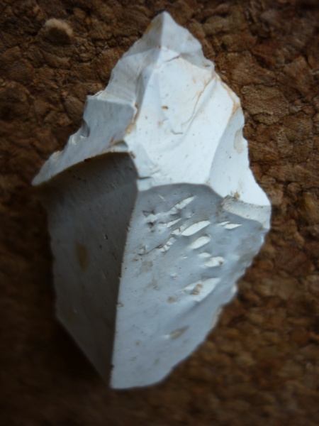 Eclat certe neodom; mais je suis pratiquement sur que cet éclat à servi d'outil; la pointe est encore piquante et un coté est légèrement retouché.