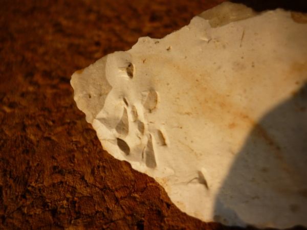 On distingues des petites retouches latérales de part et d'autre du bulbe : peut-être un genre de petit grattoir ?