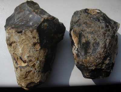 Le' shooping' à l'air sympa, tu pourrais peut-être nous les présenter individuellement ? Ca a l'air d'être du silex, ce n'est pas du quartzite, le gros' tranchet' a l'air d'avoir des enlèvements rebroussés sur la gauche ? Cordialement.