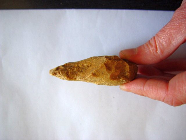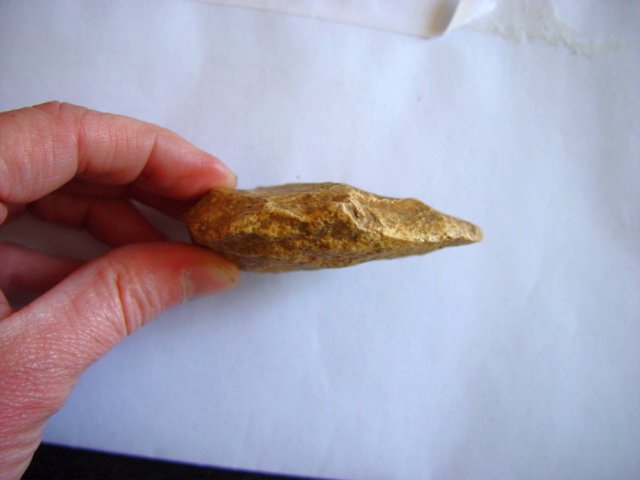 Bon il s'agit apparemment plus d'un biface partiel ou d'un peut-etre d'un pic triedrique. (en fait il ressemble pas mal, Ã l'outillage de Terra Amata.