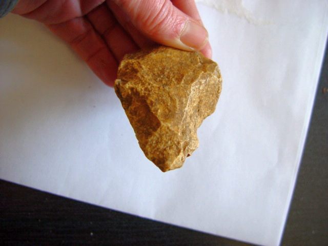 (ie: acheuleen moyen ou acheuleen supérieur ? Cela dit cela reste une pièce taillé dans un éclat, enfin c'est mon impression, en tout cas sans cortex...)