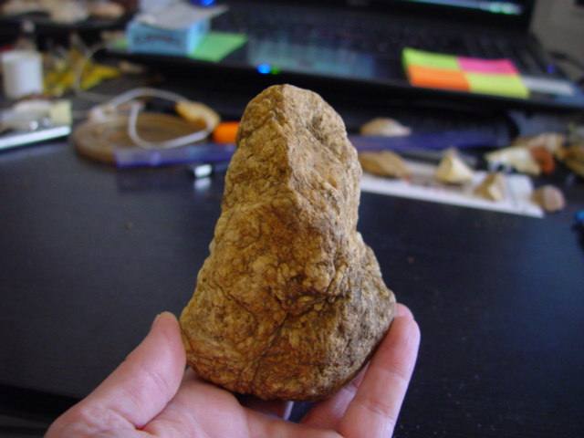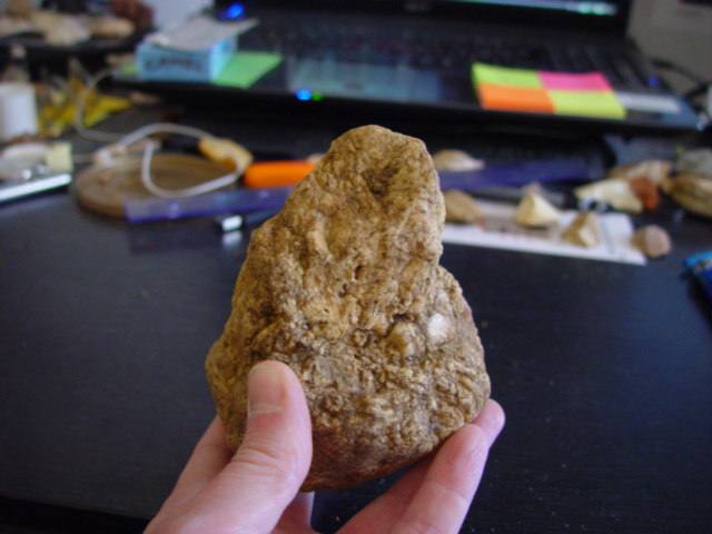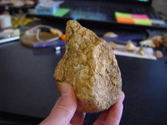 ce qui m'interpelle c'est qu'il s'agissait d'un galet et que la façon dont il est fracturĂ© me suggĂšre une intervention humaine ! malgrĂšs l'absence de retouches ,j ai quand mĂȘme l'impression qu'une mise en forme Ă Ă©tĂ© opĂ©rĂ© (le quartz est une roche qui peut facilement se dĂ©grader dans certains milieux , pourquoi pas un coup de poing ,ou un pic dont la structure aurait vraiment souffert des attaques du temps!!!! PERPLEXE
