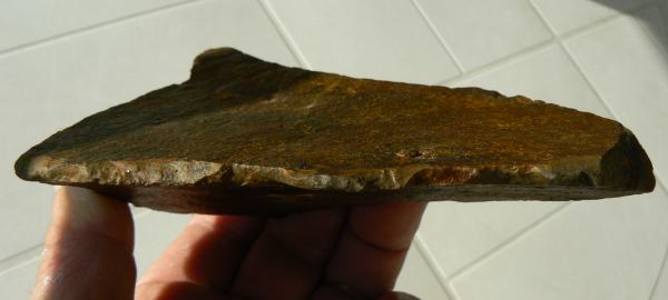 Pour faire écho au post de marc, comme quoi il ne faut pas se fier au apparence, je post ce racloir (je peus fournir des photos plus détaillées du tranchant ) trouvé sur l'estran, qui n'a rien a voir avec le clivage ou le concassage mais qui est absolument minimaliste et efficace dans sa réalisation, je sais que certain trouve mes posts limite mais je suis persuadé que ces outils sont bien antérieurs au néo et méso voir plus, cela peut paraitre prétentieux de ma part mais je ne pense pas être dans le faux. Merci pour vos commentaires.